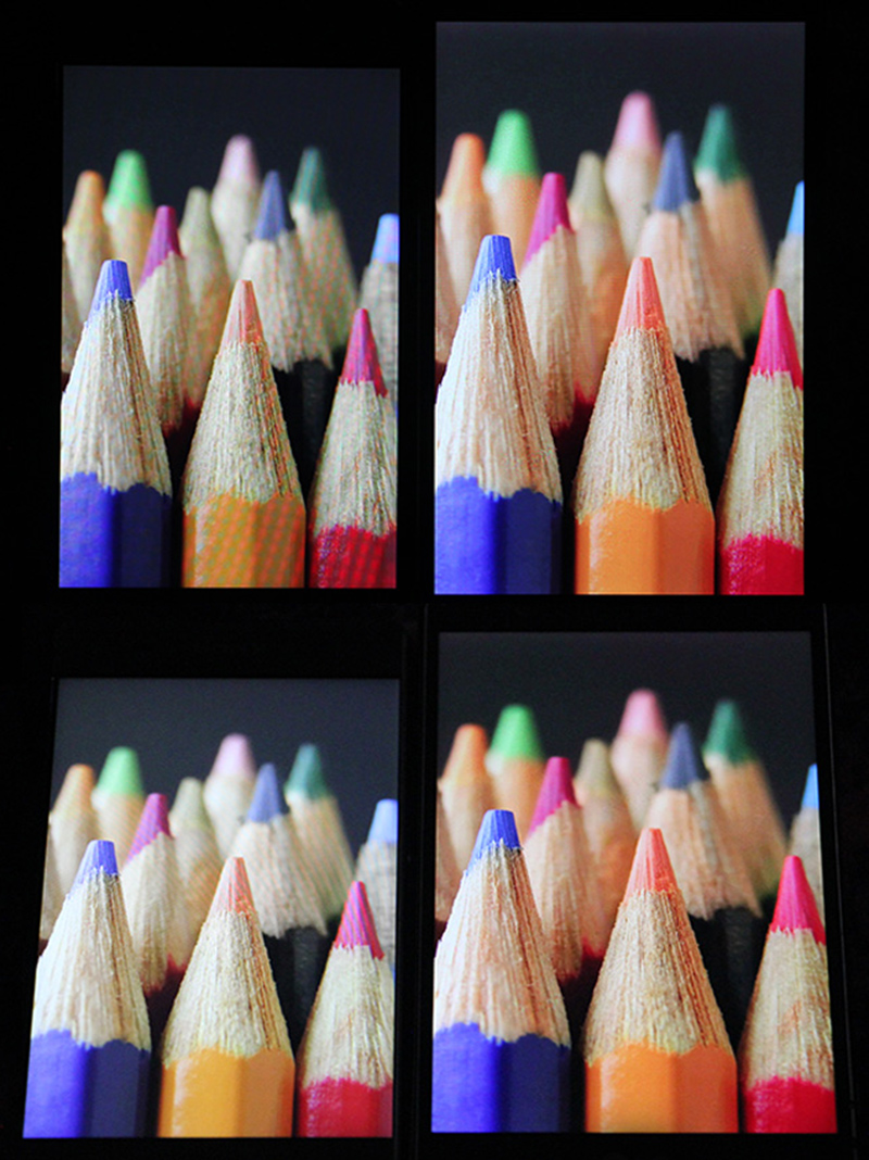 همان طور که مشاهده میکنید در XA، رنگها سردتر و مشکی آن روشنتر است. با تغییر جهت دید سردی رنگها و روشن شدن رنگ مشکی بیشتر خودنمایی میکند. رنگها در الجی G4 واقعیتر نشان داده شدهاند.