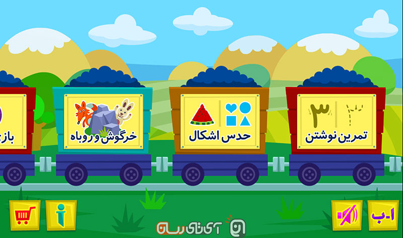 روی اولین کابین، آموزش نوشته شده است که با ورود به آن سه قسمت مختلف آموزشی اعداد، اشکال انگلیسی یا فارسی و اجزای بدن به زبان انگلیسی یا فارسی آموزش داده می‌شوند. بعد از وارد شدن به بخش آموزشی مورد نظر می‌توانید با لمس کردن تصویر، تلفظ آن به زبان انگلیسی یا فارسی را بشنوید.