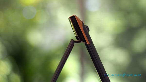 بخش پایینی بدنه این لپتاپ از جنس فیبر کربن بوده و در قسمت بالا از آلومینیوم استفاده شده است. باریکی Spectre 13 به اندازه ۱۰.۴mm است که با توجه به پورتها، سیستم خنککننده و صفحه لمسی آن بسیار نازک است.