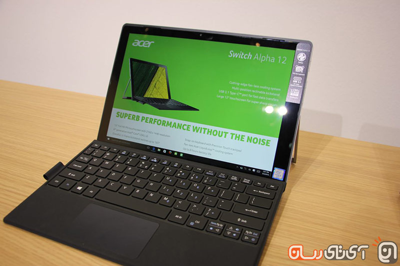 با ورود به غرفه اولین چیزی که به چشم میآید، بخش قرارگیری لپتاپهاست. کمپانی ایسر امسال با معرفی Swift 7،Predator 21 X ،Spin 7 و کرومبوک R 13 اوج قدرتنمایی خودش را در زمینه تولید و ساخت نوتبوک به رخ همگان کشید. لپتاپ Swift 7 را با ضخامت ۹.۹۸ میلیمتری بعنوان نازکترین لپتاپ دنیا معرفی کرد. کمی آن طرفتر Spin 7 قرار گرفته که شباهت زیادی به Swift 7 داشته اما قابلیت تا شدن ۳۶۰ درجهای هم دارد. Predator 21 X هم با تمرکز بر دنیای گیم، همراه یک نمایشگر منحنی حضور دارد. اما این پایان معرفی نوتبوکهای ایسر نیست و این کمپانی از یک کرومبوک ۱۳.۳ اینچی که قابلیت تبدیل شدن به تبلت را نیز دارد، پرده برداری کرده است. اینجاست که قدرت ایسر به چشم میآید.