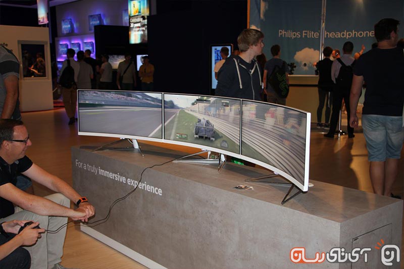 هنگامی که وارد غرفه این کمپانی میشویم انبوهی از محصولات تازه معرفی شده به چشم میآیند. اولین چیزی که بسیار خودنمایی میکند، تلویزیون OLED تازه معرفی شده این کمپانی است. فیلیپس تاکنون در عرصه تلویزیونهای OLED فعالیتی نداشته و ۹۰۱F Ambilight را میتوان بعنوان اولین تجربه این شرکت در زمینه این نوع تلویزیونها دانست. ۹۰۱F Ambilight با رزولوشن ۴K و به صورت OLED به زودی برای عرضه قابل دسترس خواهد بود. این تلویزیون تقریبا بخش اعظمی از غرفه را به خودش اختصاص داده بود.