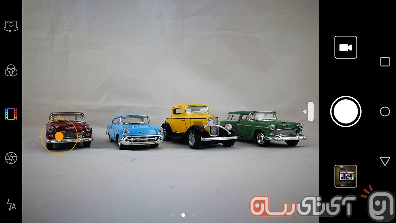 اگر در رابط کاربری دوربین به سمت راست سوایپ کنید، وارد بخش تنظیمات میشوید. در این قسمت گزینههای زیادی پیش روی شماست. میتوانید میزان رزولوشن دستگاه را از ۲۰ مگاپیکسل به ۶ مگاپیکسل تغییر دهید و در این بین چند انتخاب دیگر نیز دارید و میتوانید بسته به هدف خود یکی را برگزینید. نکته جالب اینجاست که برای عکاسی با نسبت تصویر ۱۶ به ۹ باید دوربین را در حالت ۹ مگاپیکسلی تنظیم کنید و بیش از این مقدار تنها شامل نسبت ۴ به ۳ میشود.