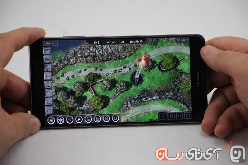 پس از بررسی هواوی میت ۹ در بخش سختافزاری و دیدن این نتایج خوب، تصمیم گرفتیم تا چند بازی را بر روی آن بریزیم و نحوه اجرا و میزان گرمای تولید شده را مورد ارزیابی قرار دهیم. راستش را بخواهید میت ۹ خیلی کمتر از آنچه که فکرش را میکردیم، داغ شد! هنگام اجرای بازیهای گرافیکی سنگین همچون سری آسفالت و یا مدرن کمبت دما بسیار بالا رفت که خب طبیعی است اما وقتی بازیهای سبکتری همچون Defence Zone (چقدرم سبکه ماشاالله) را بر روی میت ۹ تست کردیم دما خیلی معمولی بود. این در حالی است که اجرای چنین بازیهایی در پرچمداران سایر کمپانیها گرمای بسیار بالایی را تولید میکند. واقعا نمیدانم شاید هواوی راز خنک نگهداشتن دستگاه را فهمیده باشد؛ شاید…!