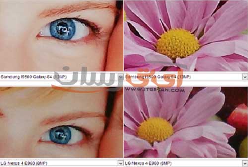 یکی از مهمترین بخشهای گوشیهای هوشمند امروزی همین بخش دوربین است. گلکسی اس4 با یک دوربین 13 مگاپیکسلی، تک فلش LED و گشودگی دیافراگم 2.2 با کیفیت فیلمبرداری فول اچدی پا به میدان گذاشته واین در حالیست که در سوی دیگر نکسوس 4 از یک دوربین 8 مگاپیکسلی به همراه تک فلش LED خود وارد رقابت با غولی چون گلکسی اس4 شده است. هر دو گوشی کیفیت عکس برداری خوبی را ارایه میدهند. البته سامسونگ با قابلیتهای متفاوتی که در دوربین پرچمدار خود نهفته، گوی سبقت را از نکسوس 4 ربوده است. قابلیتهای متعددی همچون عکاسی پانوراما، حالت ماکرو، لرزش گیر دست و… که در دل این دوربین جای گرفته است البته علاوه بر نرم افزارهای کاربردی، قابلیتهای منحصر به فردی نیز در این دوربین جا داده شده است. به عنوان مثال هنگامی که شما در حال عکسبرداری از سوژه مورد نظر خود هستید، میتوانید دوربین جلوی دستگاه را فعال نموده و توسط هر دو دوربین هم زمان شروع به عکس برداری کنید! به گونهای که در یک تصویر هم نمای جلویی دوربین دیده شود هم نمای پشت آن.