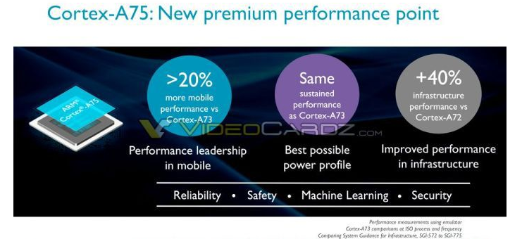 هسته Cortex-A75 دارای حداکثر فرکانس 3.0 گیگاهرتز بوده که افزایش 200 مگاهرتزی نسبت به Cortex-A73 را نشان میدهد. این افزایش فرکانس، بهبود عملکرد تکهستهای و چند هستهای این پردازنده را در پی خواهد داشت.