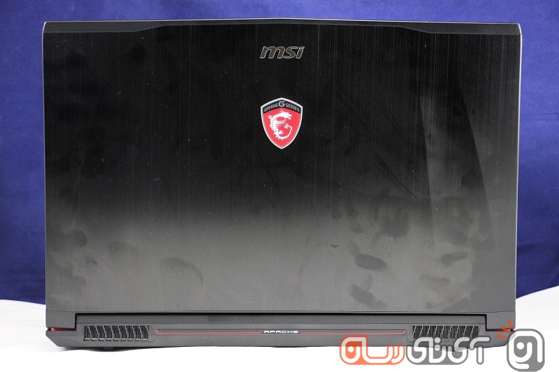 بخش پشتی نمایشگر لپ‌تاپ نقش و نگارهایی را به خود می‌بیند و درست در قسمت بالایی و مرکز آن شاهد نامی از MSI و لوگوی Gaming Series هستیم. این لوگو همچون محصولات اپل و برخی مدل‌های ایسوس با روشن شدن دستگاه نورانی خواهد شد و اگر در محیطی تاریک مشغول کار با دستگاه باشید، اژدهای خشمگین MSI نخستین چیزی است که به چشم می‌آید. خود لوگو، خطوط اطراف آن و صد البته رنگ بندی دستگاه به نوعی است که یاد و خاطره محصولات فراری در ذهن‌تان زنده می‌شود! بله درست خواندید؛ اگر از بالا به بخش پشتی لپ‌تاپ بنگرید، گمان می‌کنید که با کاپوت یک خودرو طرف هستید!