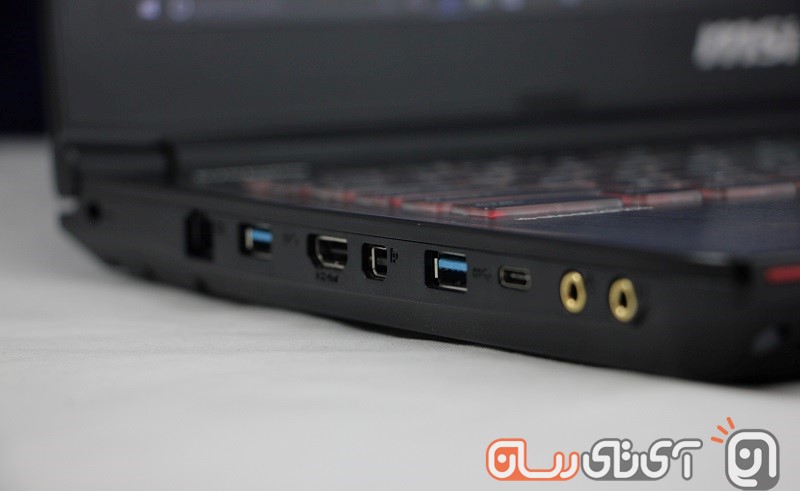 سمت چپ شلوغ‌ترین قسمت در اطراف این اژدهای تایوانی است. در این قسمت شاهد یک پورت LAN، خروجی تصویر HDMI ،DisplayPort، دو پورتUSB 3.0، جک ۳.۵ میلی‌متری هدفون و میکروفون هستیم. در میان آن‌ها نیز یک پورت USB Type-C به چشم می‌خورد که در واقع یک حرکت هوشمندانه از سوی MSI به حساب می‌آید. با همه این‌ها دیگر خبری از پورت‌هایی همچون eSATA و یا VGA در این محصول نیست.