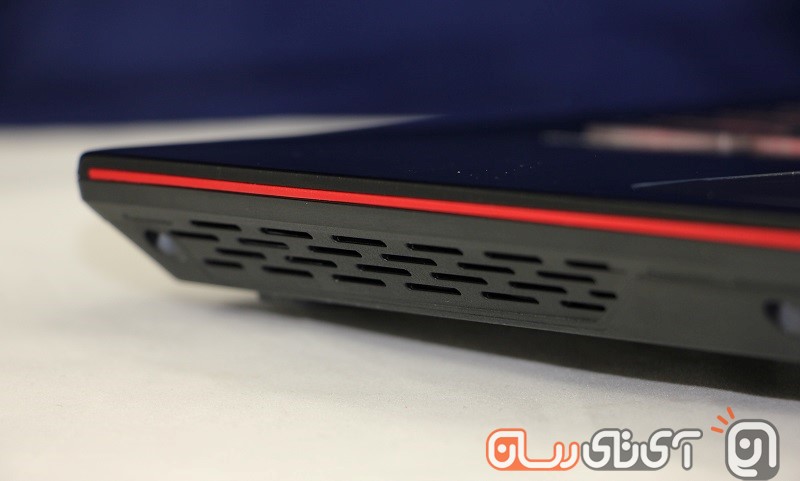 اگر از بالا به بدنه دستگاه بنگرید، LED‌های نشان‌دهنده وضعیت دستگاه را نخواهید دید اما در نگاه از روبه‌رو و درست در زیر تاچ‌پد، سه LED آبی رنگ جای خوش کرده‌اند که وضعیت باتری، وای‌فای و هارد دیسک را نشان می‌دهند. پشت دستگاه نیز تنها خروجی هوای فن‌های دستگاه هستند که خودنمایی می‌کنند.