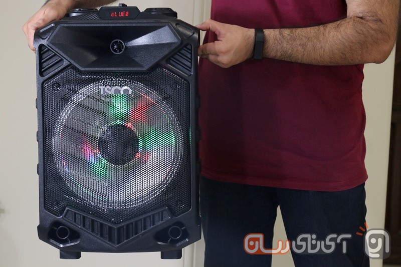 در نگاه از روبهرو، یک اسپیکر بزرگ را میبینید که شاید پیشتر شبیه این را در تالارها دیده باشید! این قسمت توسط یک توری با کیفیت محافظت میشود تا دیگر نگران برخورد اجسام نوک تیز با اسپیکر نباشید. در این بخش همچنین لوگوی TSCO را شاهد هستیم که با چسب به توری چسبانده شده است!