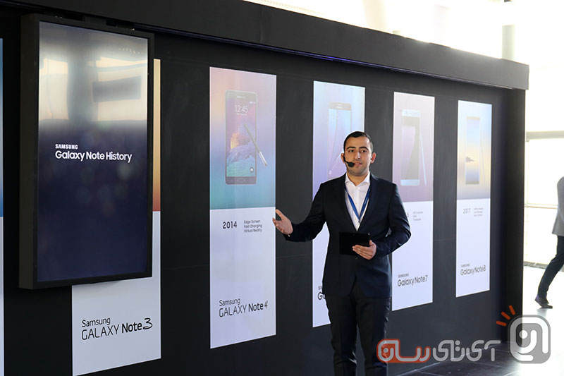 نفر آخر، دامون بقراط، مدیر توسعه و آموزش موبایل سامسونگ تا درباره ویژگیهای آخرین محصول سری نوت صحبت کند، وی گفت: اکثر شما با نوت ۸ آشنا هستید. خیس شدن گوشی لب ساحل یا باران یکی از دغدغههای کاربران بوده و ما دستگاهی ساختیم که در برابر رطوبت مقاوم است.