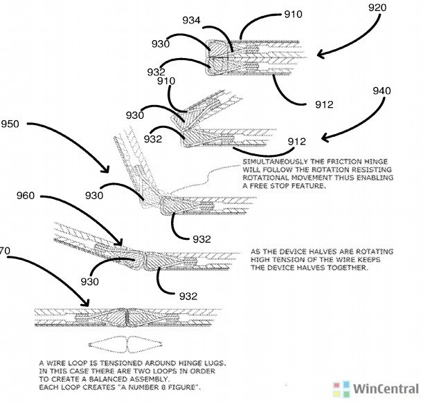 این پتنت همچنین در مورد مکانیزم لولای 360 درجهای و ویژگی free-stop گوشی اندرومدا توضیح میدهد. لولاها مزایای فراوانی را به همراه دارند. در اصل، اجزای اتصالی انعطاف پذیر در کانالهای لولهای لولاها قرار میگیرند و با چرخش 360 درجهای دستگاه، در فضای سطحی گوشی با نمایشگر دوگانه گسترده نخواهند شد (یا کمترین میزان گستردگی را خواهد داشت).