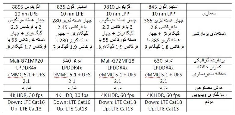 مودم تراشههای اسنپدراگون 835 و 845 به ترتیب X16 و X20 است که اندکی تفاوت در سرعت اتصال و برخی دیگر از ویژگیها دارند. نکته دیگر این است که در تراشههای اسنپدراگون 835 از کمک پردازندههای Hexagon 682 به عنوان پردازندههای عملیاتهای مبتنی بر هوش مصنوعی استفاده شد که امسال این کمک پردازنده با نام Hexagon 685 در تراشه اسنپدراگون 845 وجود دارد اما به دلیل اینکه تراشههای امسال دارای بخشی مجزا و اختصاصی در زمینه هوش مصنوعی هستند لذا در جدول فوق برای تراشه اسنپدراگون 835 قابلیت هوش مصنوعی تعریف نشده است.