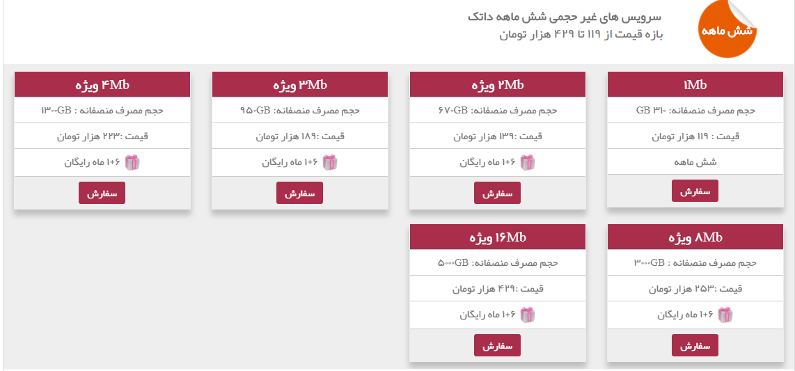 در این طرح فروش، بیشترین مبلغ پرداختی برای هر گیگابایت 384 تومان در پکیج 512 کیلوبیت است. کمترین مبلغ پرداختی نیز متعلق به پکیج 16 مگابیت ویژه است که برای هر گیگابایت ترافیک مبلغی در حدود 85 تومان پرداخت میشود. این پکیج یکماه هدیه رایگان دارد.