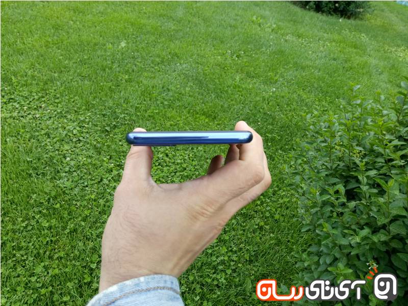 در بخش بالایی دستگاه هیچ درگاه، شیار یا نشانه خارجیای وجود ندارد و تمامی امکانات در بخش پایینی بدنه تمرکز پیدا کردهاند. در لبه پایینی دستگاه به ترتیب از سمت چپ به راست شاهد حضور درگاه ورودی جک 3.5 میلیمتری هدفون، درگاه میکرو یواسبی در مرکز و خروجی صدای دستگاه در سمت راست هستیم.