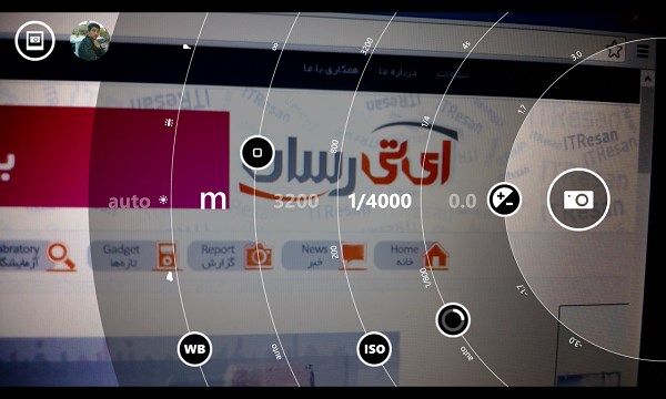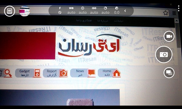هنگامی که برنامه را اجرا میکنید به صورت پیشفرض وارد بخش Camera میشوید که در بخش بالایی آن منوهایی جهت تنظیمات دستی موجود است که به وسیله آن میتوانید مقدارISO، روشنایی صفحه، سرعت شاتر، میزان فوکوس، میزان سفیدی صفحه و در نهایت روشن و یا خاموش بودن فلش را تعیین کنید. البته با کشیدن آیکون دوربین به سمت جلو تمامی تنظیمات به صورت یکجا در دسترس شما قرار خواهند گرفت.
