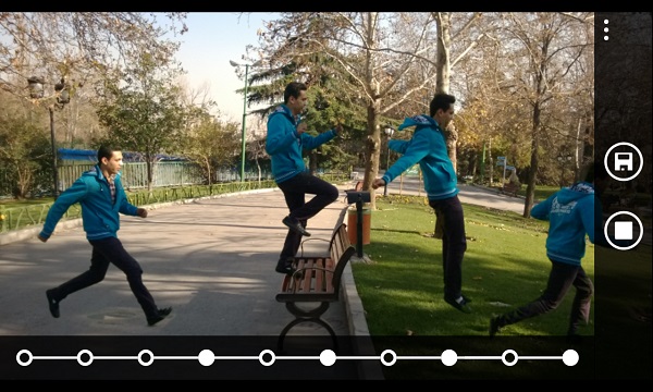 با کشیدن صفحه به سمت بالا وارد بخشی به نام Action Shot شده و میتوانید تمامی عکسها را با یکدیگر ترکیب کنید و در نهایت به عکسی فوقالعاده همچون عکس زیر دست یابید!