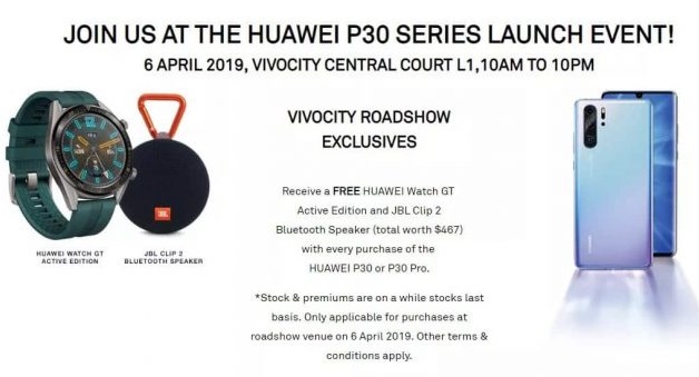 اخیرا یک صفحه تبلیغاتی برای هواوی P30 تمام ویژگیهای دوربین آن را مشخص کرده، همچنین برای خریداران سنگاپوری این گوشی، هدایایی را که همراه خرید دریافت میکنند، اعلام کرده است. طبق گزارش این سایت، یک ساعت هواوی واچ GT و یک اسپیکر JBL Clip 2 که در مجموع، ارزشی معادل 345 دلار دارند جزو هدایای خرید پرچمداران جدید هواوی هستند.