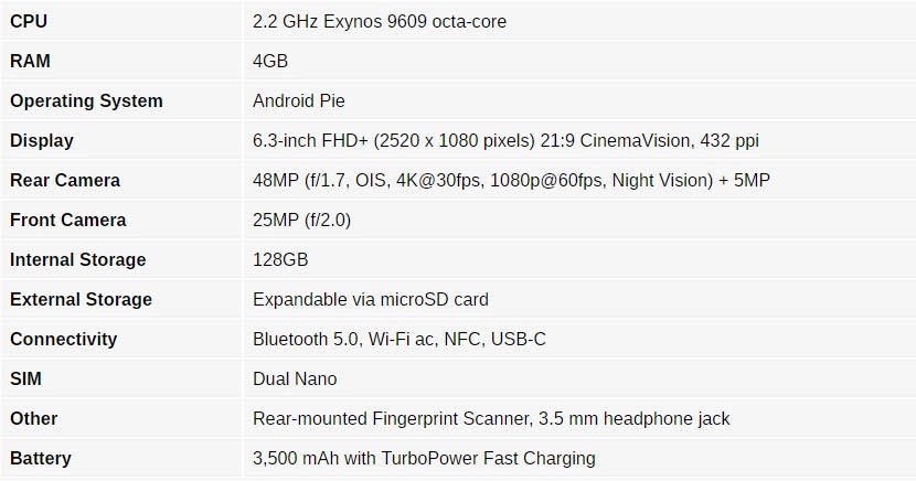 در ادامه میتوانید شاهد فهرستی از مشخصات این گوشی باشید: