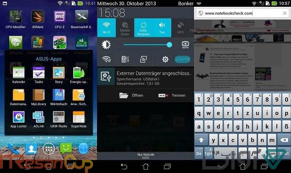 در بخش نرمافزار هر دو رقیب از سیستم عامل محبوب اندروید سود میبرند ولی نسخه اندروید فونپد 4.2 و نسخه اندروید میت 2 4.3 است که البته تفاوت فاحشی بین این دو ورژن مشاهده نمیشود. از نظر ظاهر و کاربردی بودن رابط کاربری، هر دو فبلت ویژگیهای خود را دارند. رابط کاربری فونپد و درکل ایسوس با شباهت بیش از حد به اندروید خالص، راحتی و لذت خاصی را به کاربر ارایه میدهد. البته شاید از نظر ظاهری جذابیت چندانی به کاربر القا نکند ولی درعوض سبک بودن این رابط منجر به عملکرد بهتر دستگاه خواهد شد. برنامههای خاص این گوشی بیشتر در بخش قلم نوت آن قرار دارند که به کاربر اجازه استفاده بهینه از ویژگیهای آن را خواهد داد. اگرچه این قلم و برنامههای آن به هیچ وجه به پای قلم S-pen سری نوت سامسونگ نخواهد رسید ولی در این رقابت برتری بزرگی برای فونپد محسوب میشود.