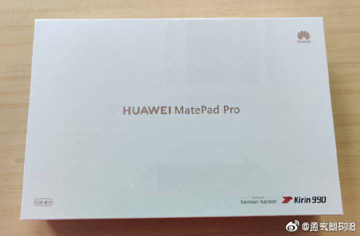 میتپد پرو درون یک جعبه سفید رنگ قرار دارد که نام آن در مرکز جعبه با رنگ طلایی نوشته شده است. در گوشه پایین سمت راست جعبه نیز نام پردازنده Kirin 990 به چشم میخورد. همچنین، در کنار نام پردازنده نیز به سیستم صدای این تبلت که شرکت Harman Kardon آن را توسعه داده اشاره شده است.