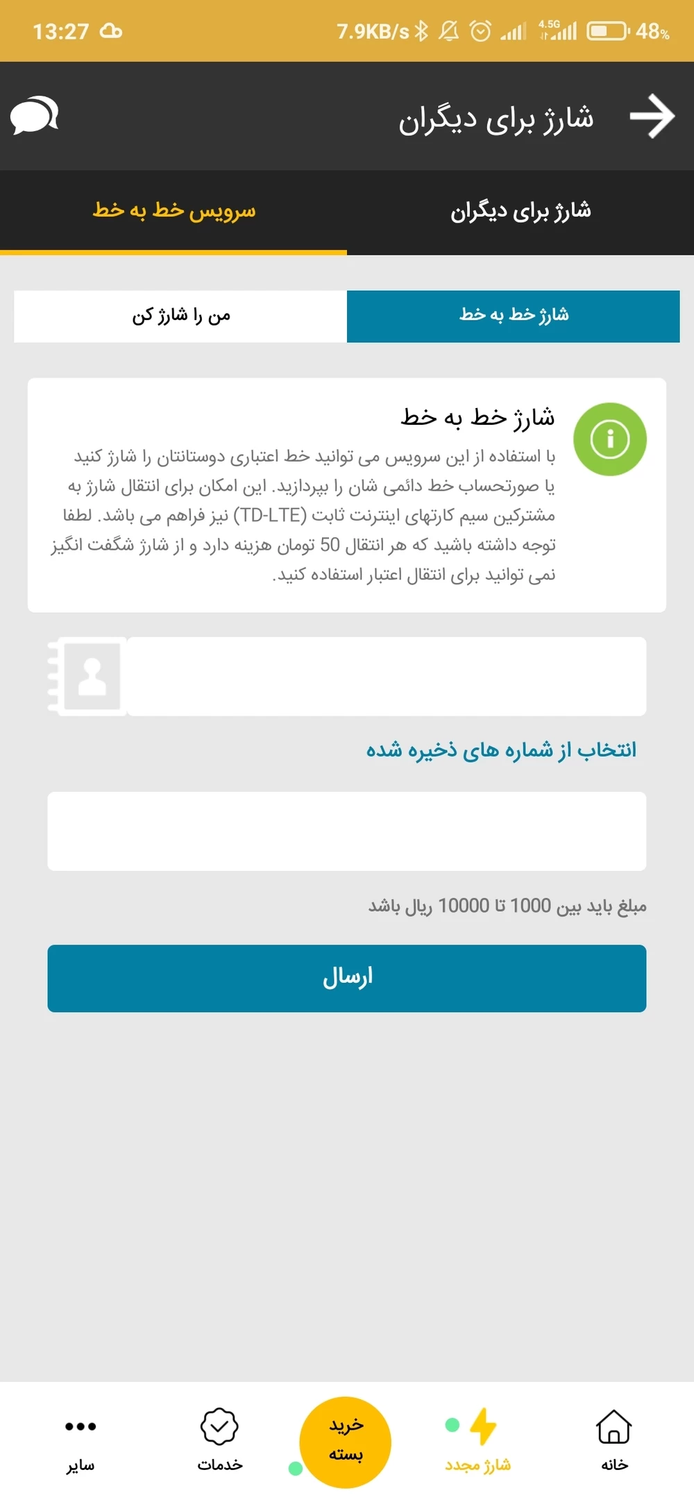 - گزینه شارژ برای دیگران را انتخاب نمایید.