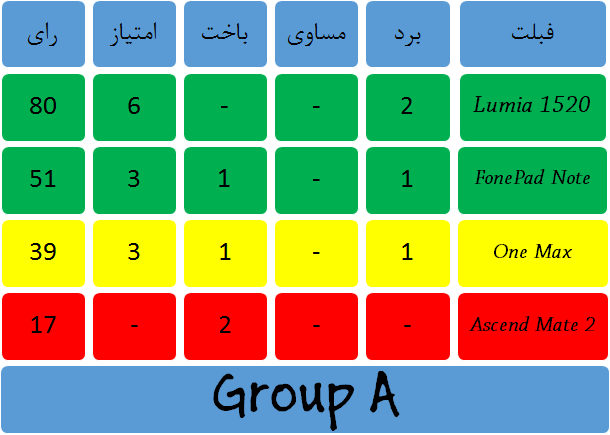 دور دوم مسابقات گروه A نیز روز گذشته به پایان رسید تا قدرتمندترین محصول نوکیا یعنی لومیا 1520 صعودش را قطعی کند و از طرفی بالا آمدن نماینده ایسوس در هالهای از ابهام قرار بگیرد!