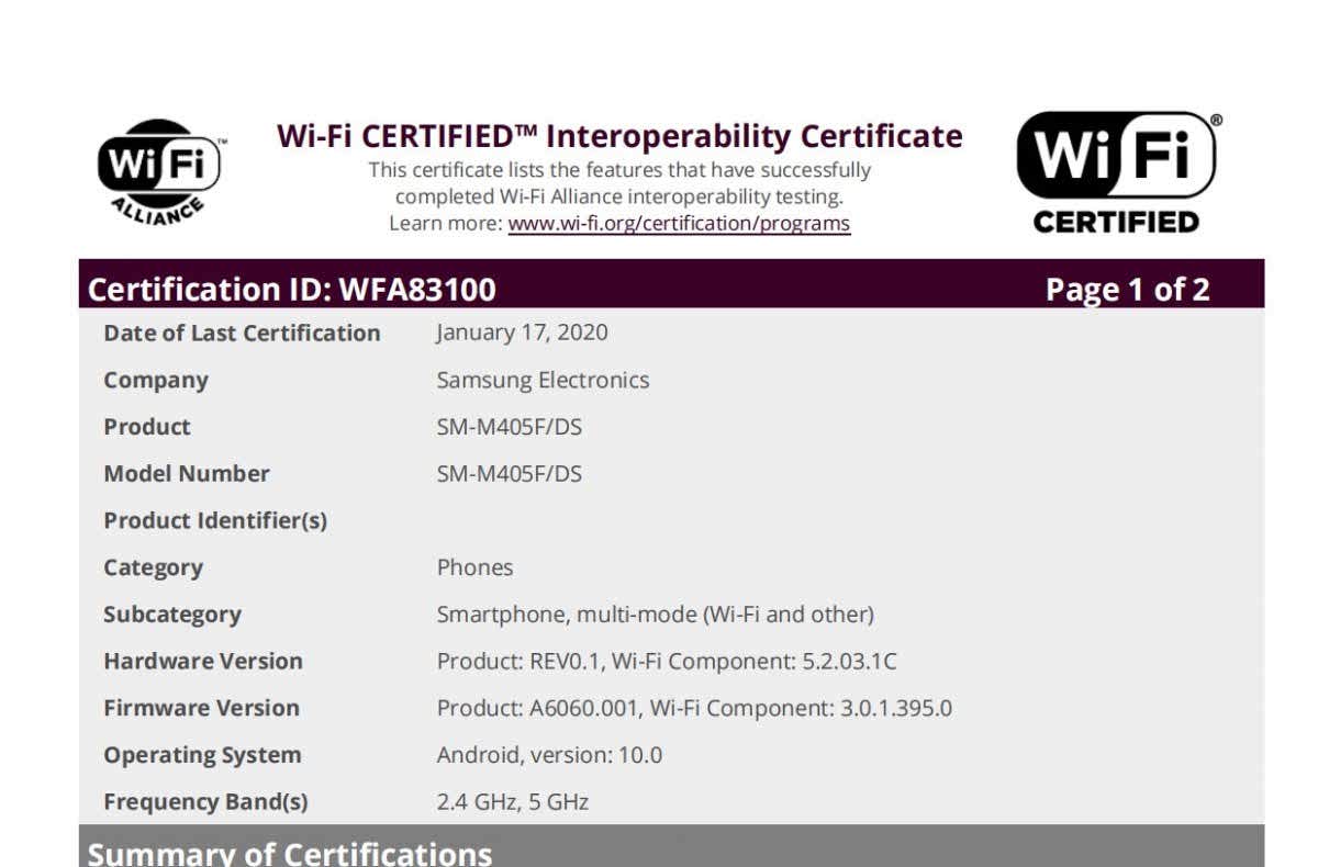 به نظر می‌رسد که این شرایط دقیقا برای گلکسی A60 و M40 هم تکرار خواهد شد. این دو هندست به‌ترتیب برای دریافت به‌روزرسانی اندروید 10 در ماه‌های آوریل و مارس امسال برنامه‌ریزی شده‌اند. البته این موضوع، باتوجه به اینکه هر دو دستگاه دارای سخت‌افزارهای تقریبا یکسانی هستند، کمی عجیب به نظر می‌رسد. با این‌حال، به‌تازگی مشخص شده است که این دو هندست در حال انجام کارهای ادارای برای اخذ تاییدیه جدید وای‌فای هستند و همانطور که می‌دانید دریافت این گواهینامه معمولا به معنای نزدیک بودن زمان عرضه آپدیت است.