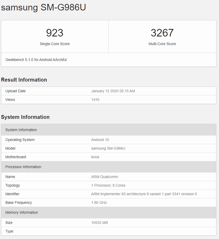 هر سه مدل دارای 12 گیگابایت حافظه رم هستند، البته، مقدار رم گزارش شده در این بنچمارک کمتر است، زیرا بخشی از حافظه رم برای تراشه گرافیکی رزرو میشود. هر سه تلفن نیز امتیاز یکسانی را در تستهای گیکبنچ دریافت کردهاند و نتایج تست فوق با نتایج سایر تلفنهای مجهز به تراشه اسنپدراگون 865 کاملا مطابقت دارد.