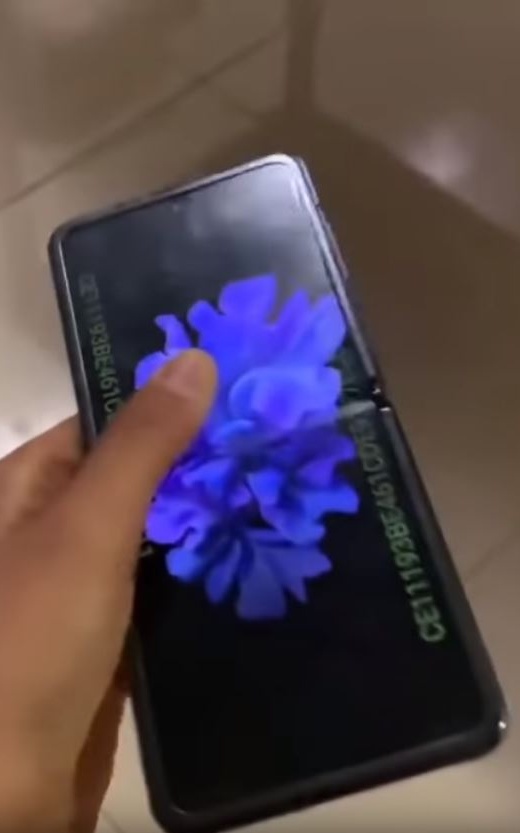 در این ویدیو کوتاه 19 ثانیه‌ای که توسط بن گسکین منتشر شده، تلفن در ابتدای کار در حالت بسته قرار دارد. در این حالت یک پنل نوتیفیکیشن 1 اینچی کوچک و دوربین دوگانه 12 مگاپیکسل مشاهده می‌شود. سطح بدنه پشتی هندست گلکسی Z Flip براق است و بسته به روشنایی محیط، رنگ بدنه بین سایه‌های صورتی و بنفش تغییر می‌کند. در این ویدیو، کاربر با یک زحمت نسبی، دستگاه را با انگشت شست خود باز می‌کند. در این حالت نیز، صفحه‌نمایش 6.7 اینچی Infinity Flex بلند تلفن با نسبت ابعاد 22:9 دیده می‌شود.