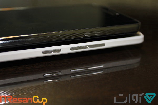 نوبت به نوت3 میرسد تا در این بخش خودنمایی کند. در جلوی این فبلت همچون دیگر اعضای پرتعداد خانواده گلکسی سه دکمه به چشم میخورند که یکی سختافزاری و دوتای دیگر لمسی هستند. در بالا هم سنسورها و دوربین دوم قرار دارند. در سمت راست دکمه پاور، در سمت چپ دکمه تنظیم صدا، در بالا جک هدفون و خروجی مادون قرمز و در پایین هم خروجی USB 3.0 قرار دارند. در پشت دستگاه که به نوعی متمایزترین بخش این فبلت در مقایسه با دیگر گلکسیها محسوب میشود، طرحی زیبا از چرم دیده میشود که البته جنس آن پلاستیک است! دوربین و فلش آن هم در بخش بالایی قرار دارند و نوت3 نیز همچون رقیب، در این بخش ما را شگفتزده میکند و قلم S-Pen خود را که در پایین بخش پشتی جای گرفته به ما نشان میدهد. شما میتوانید با دیدن تصاویری که در آزمایشگاه آیتیرسان ثبت شدهاند تیم مورد علاقه خود در این بخش را انتخاب کنید.