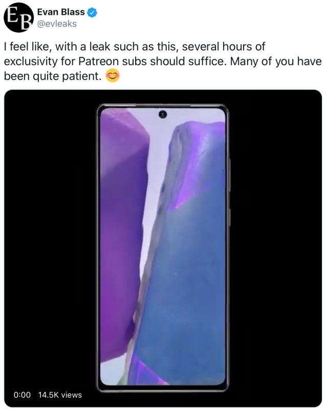 اسمارتفون گلکسی نوت 20 محصول سامسونگ در روز 5 آگوست معرفی میشود و امروز یک خبرچین قابلاعتماد با نام ایوان بلاس ویدیوی جدیدی از این محصول را به اشتراک گذاشته است. ویدیوی مذکور این هندست را از چندین زاویه مختلف نمایش میدهد. همانطور که در تصاویر زیر میبینید؛ گلکسی نوت 20 مجهز به نمایشگری با حفره دایرویشکل در قسمت مرکزی است. همچنین پنل پشتی گوشی نیز از یک ماژول مستطیلیشکل شامل 3 حسگر دوربین و یک ماژول فلاش در گوشه فوقانی سمت چپ میزبانی میکند.