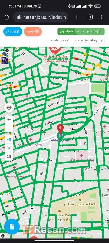 - حال میتوانید میزان پوشش شبکه اپراتور مورد نظر را در نقشه مشاهده کنید.
