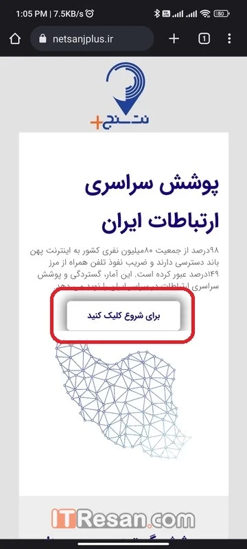 - برای بررسی پوشش اینترنت در منطقه مورد نظر، گزینه گزارش را لمس کنید.
