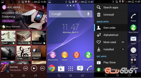 قبلا هم عرض کردم که من تغییر را دوست ندارم! به همین دلیل، همان رابط همیشگی سونی را در اختیار دارم! در صفحه اصلی میتوانید تا 7 صفحه ایجاد کنید و هرچه که دوست داشتید بر روی آنها قرار دهید! در ضمن من همچون هواوی خسیس نیستم و اجازه میدهم که علاوه بر صفحات اصلی به منو بروید و لیستی از برنامهها را ببینید و استفاده کنید! اگر در منوی برنامهها، انگشت خود را از سمت چپ به راست صفحه بکشید یک منو جدید باز میشود که میتوانید نوع نمایش برنامهها در منو را مشخص کنید و یا میان برنامههای نصب شده به جستجو بپردازید و با نوشتن نام برنامه مورد نظر به آن دست یابید! اما اگر وارد بخش Walkman شوید، گمان میکنید که با یک گوشی پرچمدار طرف هستید! سونی در این بخش برایم سنگ تمام گذاشته است! تمامی موزیکها به صورت دستهبندی شده در کنار یکدیگر قرار گرفته شده و در بخش پایینی میتوانید وضعیت موزیکی که در حال پخش است را چک کنید و در بخش بالایی میان موزیکهایتان سرچ کنید! هنگام سوییچ کردن بین منوها نیز هیچ کندی در من مشاهده نمیکنید، پس از این بابت خیالتان راحت باشد. ضمن اینکه نسخه اندروید من 4.3 هست و حتی سونی قولهایی داده که به زودی طعم شیرین کیت کت را خواهم چشید!