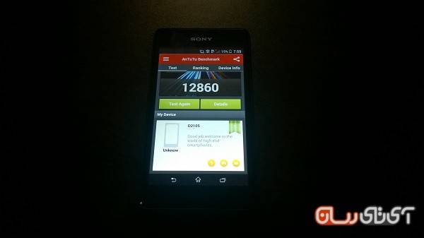 در بنچمارک AnTuTu نیز اکسپریا ای وان موفق به کسب امتیاز 12860 شد.