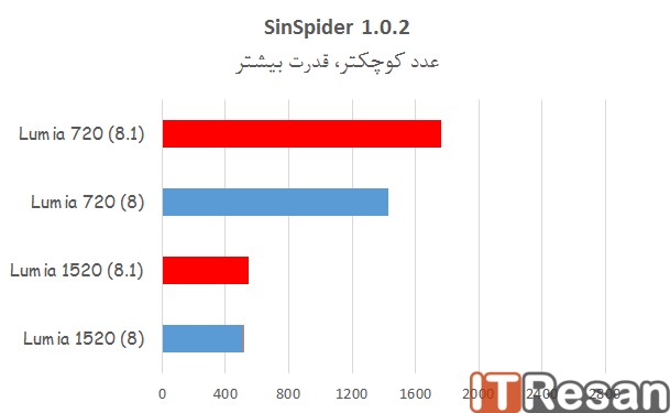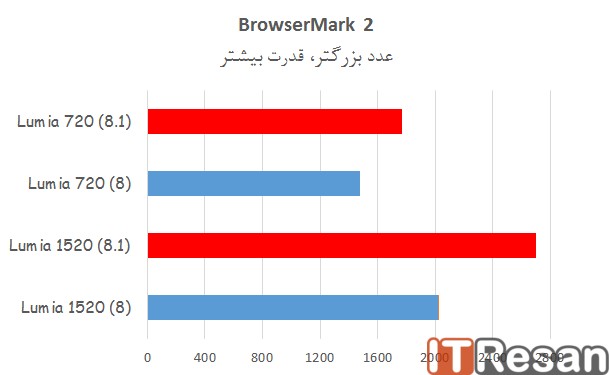 علاوه بر تغییرات ظاهری، مایکروسافت در ویندوزفون8.1 نگاه ویژهای به بالا بردن عملکرد کلی دستگاه داشته به گونهای که در بنچمارکهای مختلف، گوشیهای مورد آزمایش با سیستم عامل ویندوزفون 8.1 عملکرد بهتری را از خود بهجای میگذارند! در اینجا عملکرد دو گوشی لومیا 1520 و 720 را با ویندوزفون8.1 و بدون آن، مورد مقایسه قرار گرفته که در نمودارهای زیر شاهد آنها خواهید بود!