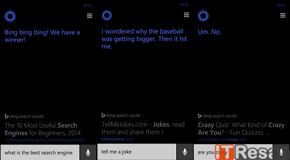 علاوه بر اینها شما میتوانید با کورتانا صحبت کنید! بعنوان مثال از او بخواهید تا موزیکی را برایتان بخواند یا به سوالات شما پاسخ دهد! در تصاویر زیر سوالاتی که از کورتانا پرسیده شده و پاسخهای جالب و بعضا خندهداری را که کورتانا به شما داده، مشاهده کنید! نکته حائز اهمیت در رابطه با هوش کورتاناست؛ شما اگر چندین بار سوالی تکراری را از او بپرسید او متوجه خواهد شد!