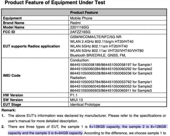 فهرست مربوط به اسمارتفون ردمی 2201116SG در وبسایت FCC