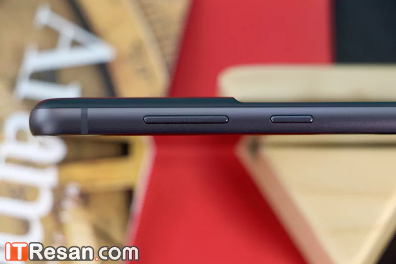 در سمت راست فریم گوشی، دکمههای تنظیم صدا و پاور دیده میشود که تجربه خوبی برای استفاده کاربران راست دست فراهم میسازد. در قسمت بالا تنها میکروفون دوم قرار دارد و مابین صفحه نمایش و فریم گوشی، شکاف کوچکی تعبیه شده تا صدای اسپیکر دوم بهتر و واضحتر به مخاطب برسد. این شکاف بسیار کوچک بوده و به خوبی مخفی شده است تا بتواند ظاهر کمحاشیه گوشی را حفظ کند.