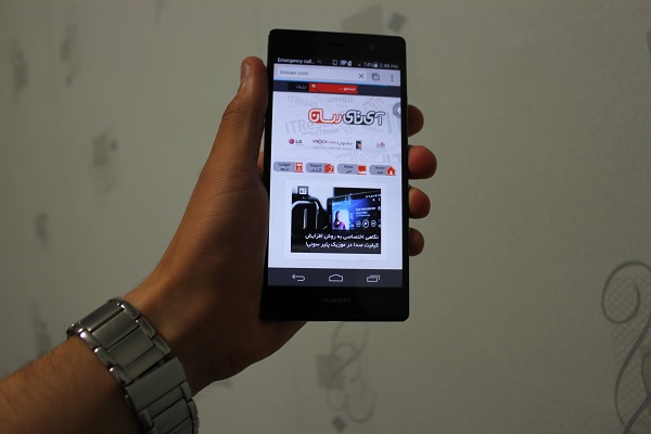 این روزها یکی دیگر از مسائلی که در پرچمداران مشاهده میشود افزایش سایز نمایشگر نسبت به پرچمدار سال گذشته است! به شخصه سایز نمایشگر 4.7 و یا نهایتا 5 اینچی را بهترین سایز برای اسمارت فونها میدانم اما این روزها اکثر کمپانیها روز به روز به میزان سایز نمایشگر محصولاتشان میافزایند تا جایی که کمپانی خود خواه اپل نیز وادار به تغییر در سایز نمایشگر محصولاتش شد! هواوی نیز همین امر را در پیش گرفته و از 4.7 اینچ در پی 6 به 5 اینچ در پی 7 رسیده است. به دلیل وضوح فول اچدی تصویر در این مدل و سایز نمایشگر معقول آن، چگالی پیکسلی در پی 7 عدد 441 را در مقابل خود میبیند که نسبت به سال گذشته جهشی قابل توجه داشته است. کیفیت تاچ بسیار عالی بوده و به به تمامی فرامین شما در کوتاهترین زمان ممکن پاسخ خواهد داد. نسخه سوم از گوریلا گلس نیز بر روی آن قرار گرفته تا محافظ چنین نمایشگر قدرتمندی باشد. با توجه به پنل IPS بکار رفته در این مدل انتظارمان در نگاه از زوایا بالاست و پی 7 هم از این بابت سربلندمان کرد! برای اینکه خودتان شاهد کیفیت مطلوب صفحه نمایش این مدل شوید، آن را در کنار پرچمدار اچتیسی با نام وان (M8) قرار دادیم و با تنظیم نور نمایشگر هر دو بر روی بیشترین میزان ممکن، چند عکس یادگاری از آنها انداختیم تا با دیدن رنگ رخسارشان به سر درونشان پی ببرید! (مدل سمت راست گوشی کمر باریک قصه ماست)