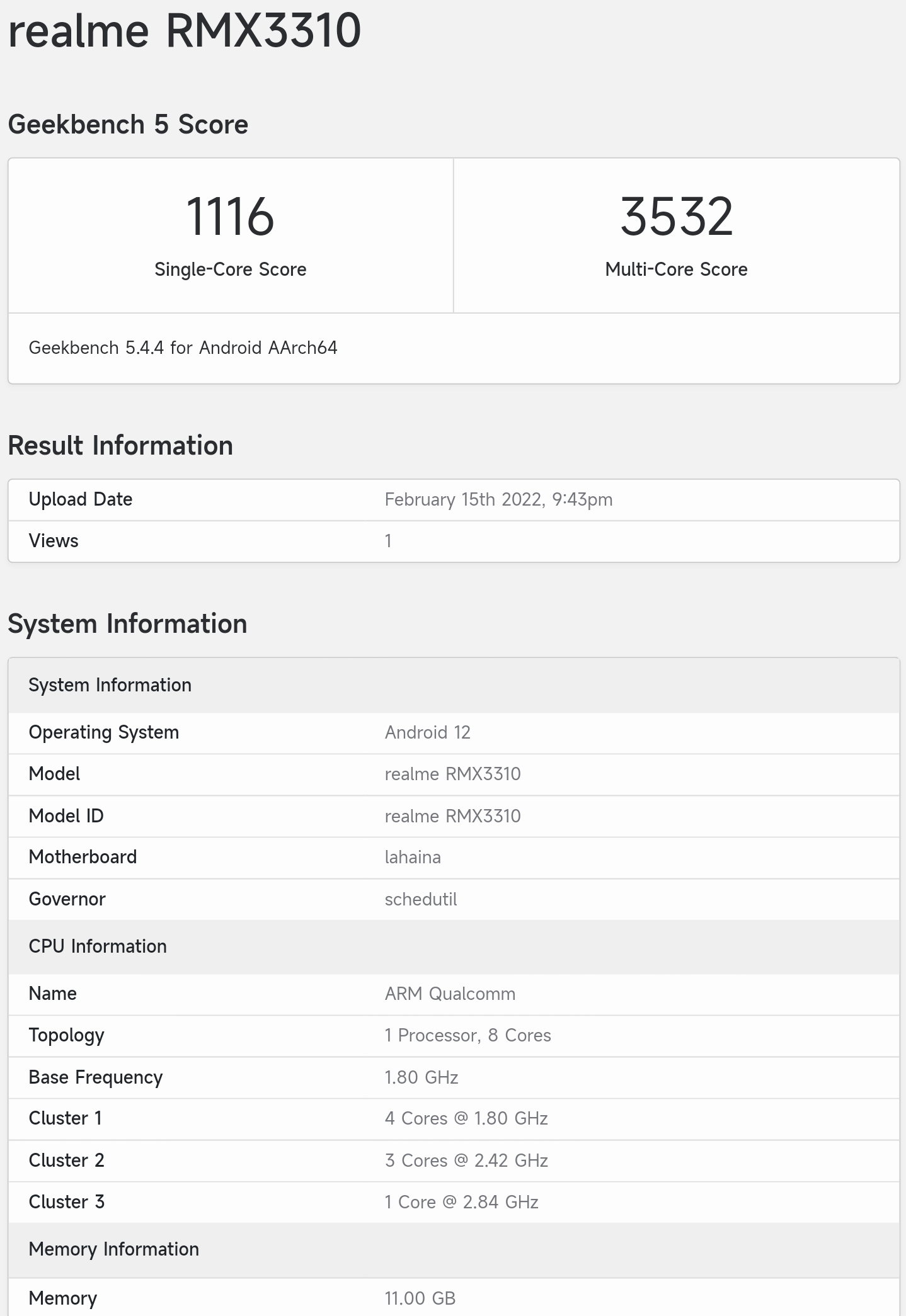 امروز یک خبرچین با شناسه Digital Chat Station نتایج مربوط به عملکرد تراشههای Dimensity 8100، اسنپدراگون 8 نسل 1 و اسنپدراگون 888 در تست بنچمارک گیکبنچ را با مخاطبان به اشتراک گذاشته است. بر این اساس تراشه مدیاتک در تست پردازش چند هستهای به آسانی 2 رقیب خود را مغلوب نموده است. دستگاههای مورد استفاده جهت اجرای تست همگی از برند ریلمی بودند و اسمارتفون با شماره مدل RMX3562 در واقع همان مدل جدید ریلمی GT NEO3 است.