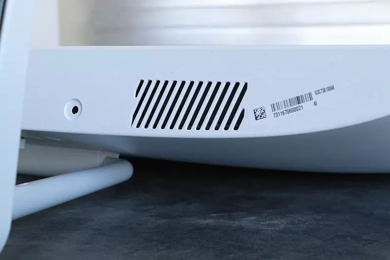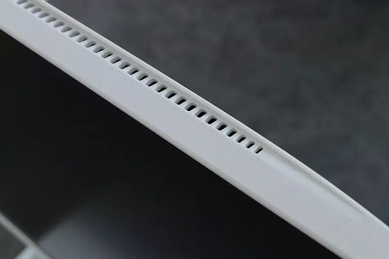 هنگام بازی تنها بخش بالای اتصال پایه گرم میشود که احتمالا محل قرارگیری پردازندههای دستگاه است و این گرما از طریق دو دریچه هوای بالای مانیتور خارج میشود. اما ایرادی که به این سیستم خنککنندگی میتوان وارد کرد، جایگیری وبکم و میکروفن است. به صورتی که زیر وبکم محل تولید گرماست و از دو طرف آنها دما خارج میشود و این یعنی دائما دمای آن دو به خاطر دمای دیگر قطعات بالا میرود؛ و احتمالا این دمای بالا تاثیر خوبی در طول عمر وبکم و میکروفن نخواهد گذاشت.