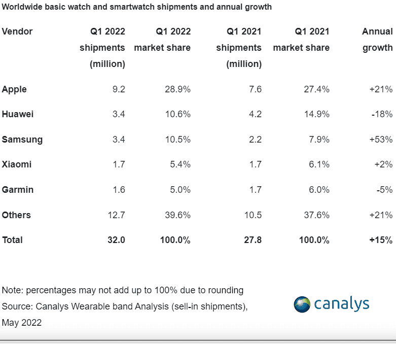 اگرچه افزایش فروش ساعتهای مچی به جبران افت فروش دستبندهای پایه کمک کرد؛ اما کاهش فروش کلی دستگاههای پوشیدنی در بازار امری اجتنابناپذیر بود. به لطف تقاضای بالا در بازار، اپل همچنان جایگاه برتر خود در زمینه فروش ساعتهای هوشمند را حفظ کرده است. سینتیا چن؛ تحلیلگر موسسه Canalys میگوید: “با وجود افزایش 53 درصدی فروش گجتهای سامسونگ، غول کرهای کماکان مغلوب هواوی شد و در جایگاه سوم قرار گرفت. اگرچه فروش ترکیبی دستگاههای مچبند و ساعتهای هوشمند هواوی افزایش یافت؛ اما کسبوکار اسمارتفونی این شرکت بهمراتب کوچکتر شد. فروش اسمارتفونهای هواوی کماکان به سیر نزولی خود ادامه میدهد. شیائومی با پیشی گرفتن از گارمین در رتبه چهارم ایستاد. این موفقیت مدیون رشد عرضه جهانی ساعتهای پایه از برندهای ردمی و Mi است.”