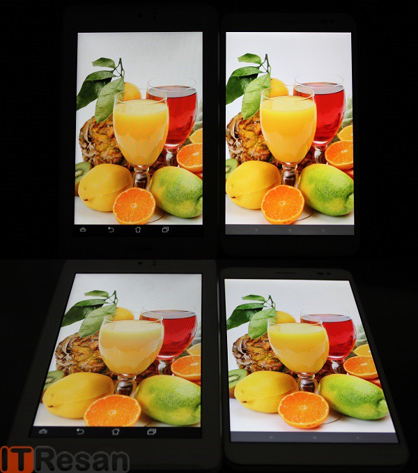 ایکس وان در رده تبلتهای 7 اینچی بازار قرار میگیرد و به واسطه وضوح تصویر بالایش (فول اچدی) توانسته تا در هر اینچ خود بیش از 320 پیکسل را بگنجاند. طبق عادت همیشگی پس از اینکه برای نخستین بار ایکس وان را دیدم نگاهی نیز از زوایا به رخسار این تبلت هواوی انداختم و همه چیز خیلی خوب به نمایش در آمد و هیچ مشکلی در نگاه از زوایا نبود، البته باتوجه به فناوری IPS بکار رفته در این مدل کمتر از این هم انتظار نمیرفت. حساسیت صفحه لمسی در حد قابل قبولی است و در مدت زمانی که برای تست در اختیار ما بود، مشکل خاصی با آن نداشتیم. نمایشگر این مدل انعکاس نسبتا زیادی دارد اما میزان روشنایی آن بسیار خوب بوده و مشکلی هنگام کار در محیطهای پر نور و یا زیر نور آفتاب نخواهید داشت. برای اینکه بدانید تعریف و تمجیدهای ما از نمایشگر این مدل به دور از واقعیت نیست، آن را در کنار رقیبش ایسوس فون پد 7 قرار دادیم تا علاوه بر تماشای کیفیت نمایشگر این مدل، مقایسه ای نیز با رقیبش داشته باشید! (بدون شک نمایشگر سمت راست متعلق به ایکس وان است)