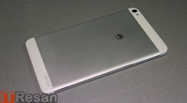 اگر تبلت را به پشت بچرخانید با ۳ بخش اصلی مواجه میشوید. در واقع قسمت پشتی تبلت از ۳ بخش مجزا تشکیل شده که قسمت اعظم آن در وسط قرار گرفته و لوگوی هواوی در مرکز آن خود نمایی میکند. در قسمت بالایی که نوار باریکی از کل تبلت را شامل شده، دوربین اصلی به همراه تک فلاش LED در سمت چپ قرار گرفته است و نوار پایینی نیز تقارن جالبی با همان نوار بالا داشته با این تفاوت که تک اسپیکر این مدل را در سمت راست خود قرار داده است. در بخش پایینی چند خطی متن و تعدادی علامت عجیب و غریب نقش بسته که کاری جز بر هم زدن زیبایی این مدل ندارد! همه اینها در حالی است که خیلی از افراد سالی یک بار هم به آن نوشتهها توجه نمیکنند.