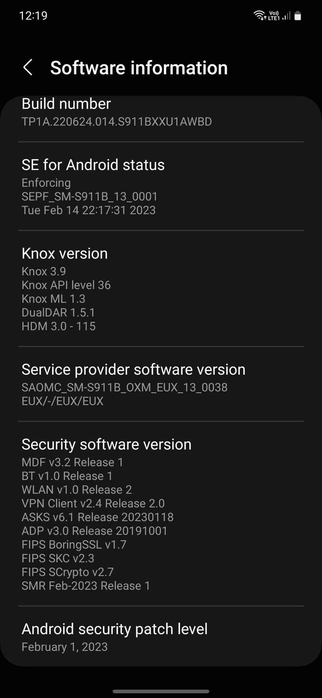 این بهروزرسانی یک آپدیت کوچک بهشمار رفته و عمدتا به رفع حفرههای امنیتی شناسایی شده در حد فاصل زمان تولید و عرضه گوشیها میپردازد. گوشیهای گلکسی S23، گلکسی S23 پلاس و گلکسی S23 اولترا با پچ امنیتی ماه ژانویه روانه بازار شدند؛ اما بهروزرسانی جدید شامل پچ امنیتی به تاریخ 1 فوریه 2023 است.