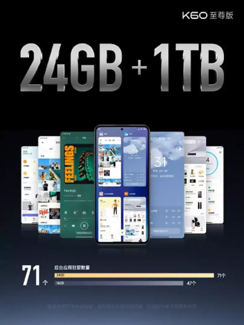 ردمی K60 اولترا اولین گوشی هوشمند برند ردمی با قابلیت محافظت کامل در برابر نفوذ آب و گردوغبار است؛ دستاوردی که مدیون بهرهمندی گوشی از گواهینامه IP68 است. همچنین این دستگاه نخستین گوشی هوشمند شیائومی با رم 24 گیگابایتی شناخته میشود. ورژن برتر این محصول دارای حافظه داخلی 1 ترابایتی است.