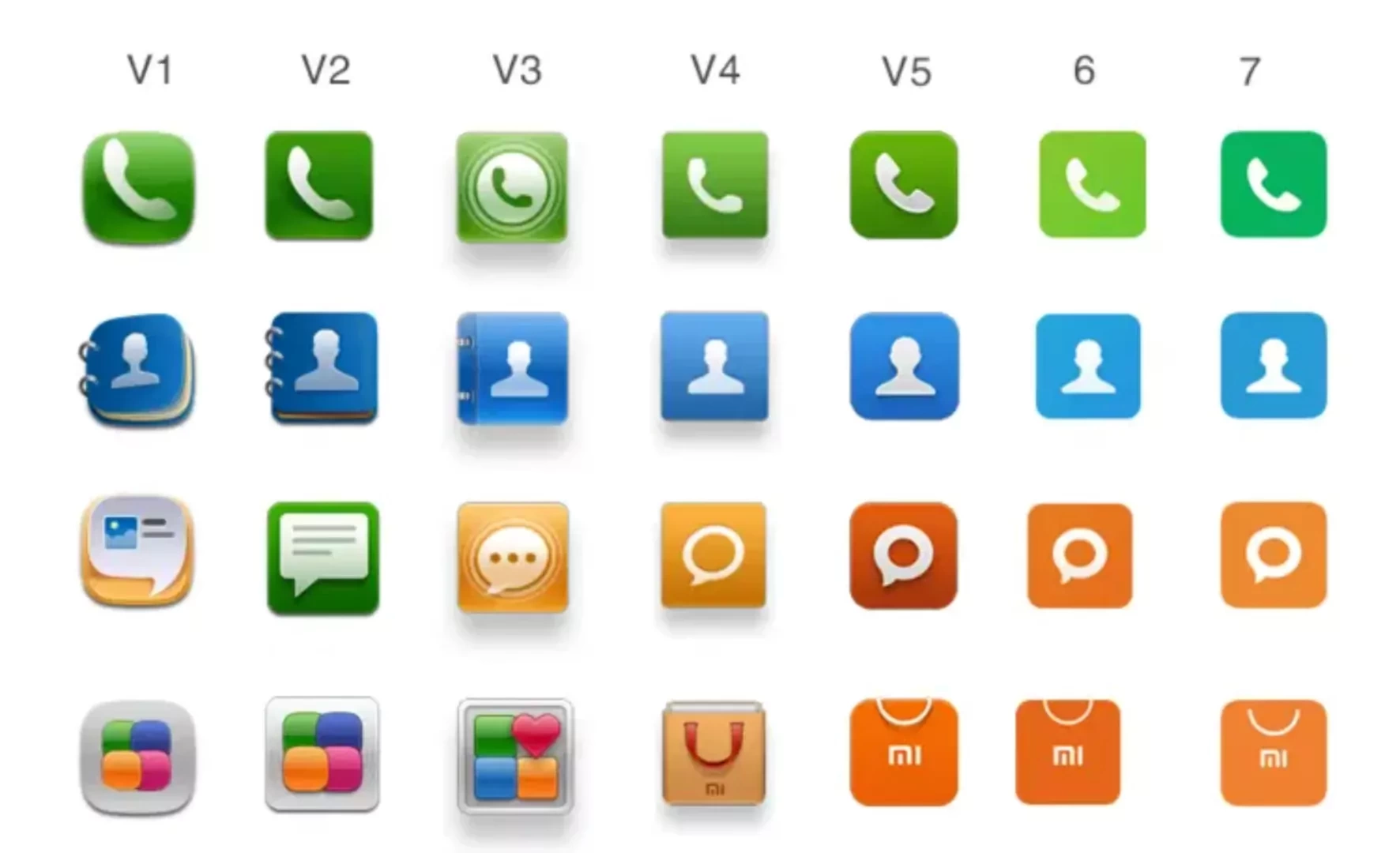 آیکونهای قدیمی MIUI (سمت چپ) در کنار آیکونهای جدید (سمت راست)