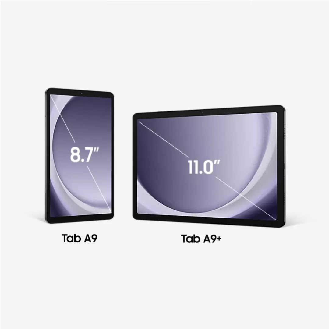 گلکسی تب A9 مجهز به یک نمایشگر 8.7 اینچی IPS LCD با رزولوشن 800×1340 پیکسل است. یکی از فهرستهای متعلق به پایگاه Google Play Console در گذشته تائید کرد که توان پردازشی مدل پایه این تبلت از طریق تراشه هلیو G99 ساخت شرکت مدیاتک بههمراه 4 گیگابایت رم و 64 گیگابایت حافظه داخلی تامین خواهد شد.