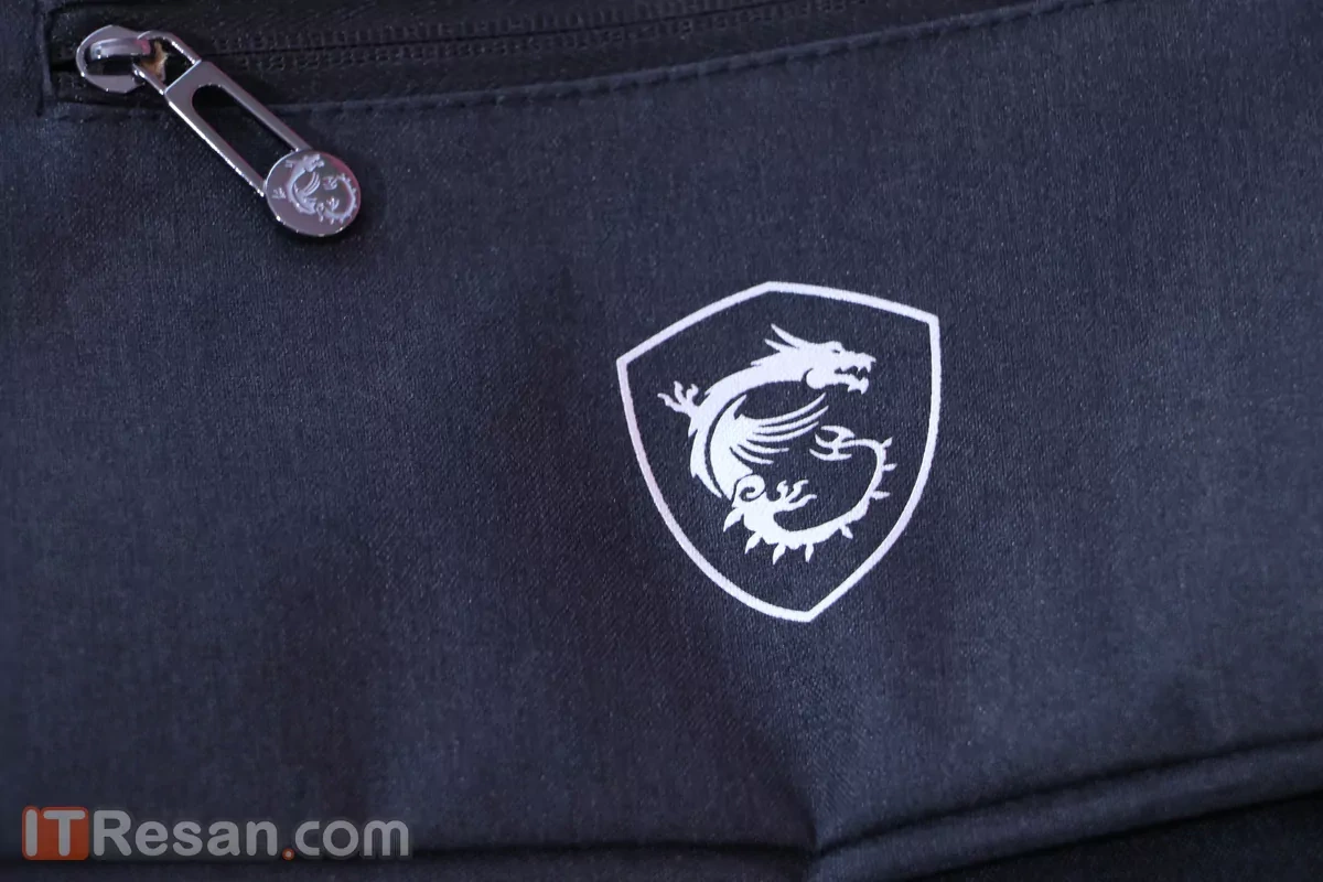 در کنار این اقلام، شرکت MSI یک کیف را هم بههمراه لپتاپ به خریداران خود میدهد. این کیف از جنس و کیفیت دوخت خوبی برخوردار بوده و کاملا نیاز شما را نسبت به خرید کیف برطرف میکند. این کیف به اندازه کافی بزرگ است و میتواند لپتاپ و تمام لوازم جانبی آن را به خوبی در خود جا دهد. این کیف علاوه بر زیپ اصلی که تمام وسایل از جمله لپتاپ در آن قرار میگیرند، یک جیب کوچک در بالای خود جا داده تا وسایل مهمتر و دمدستتر خود را در آن بگذارید.